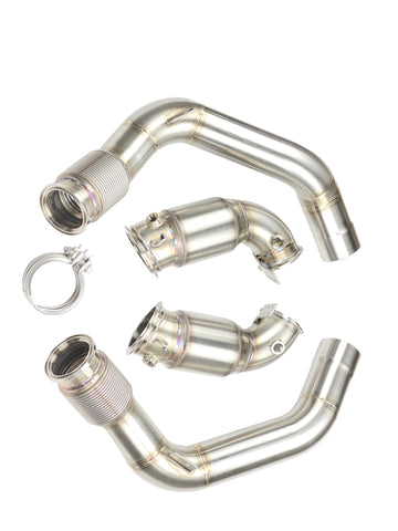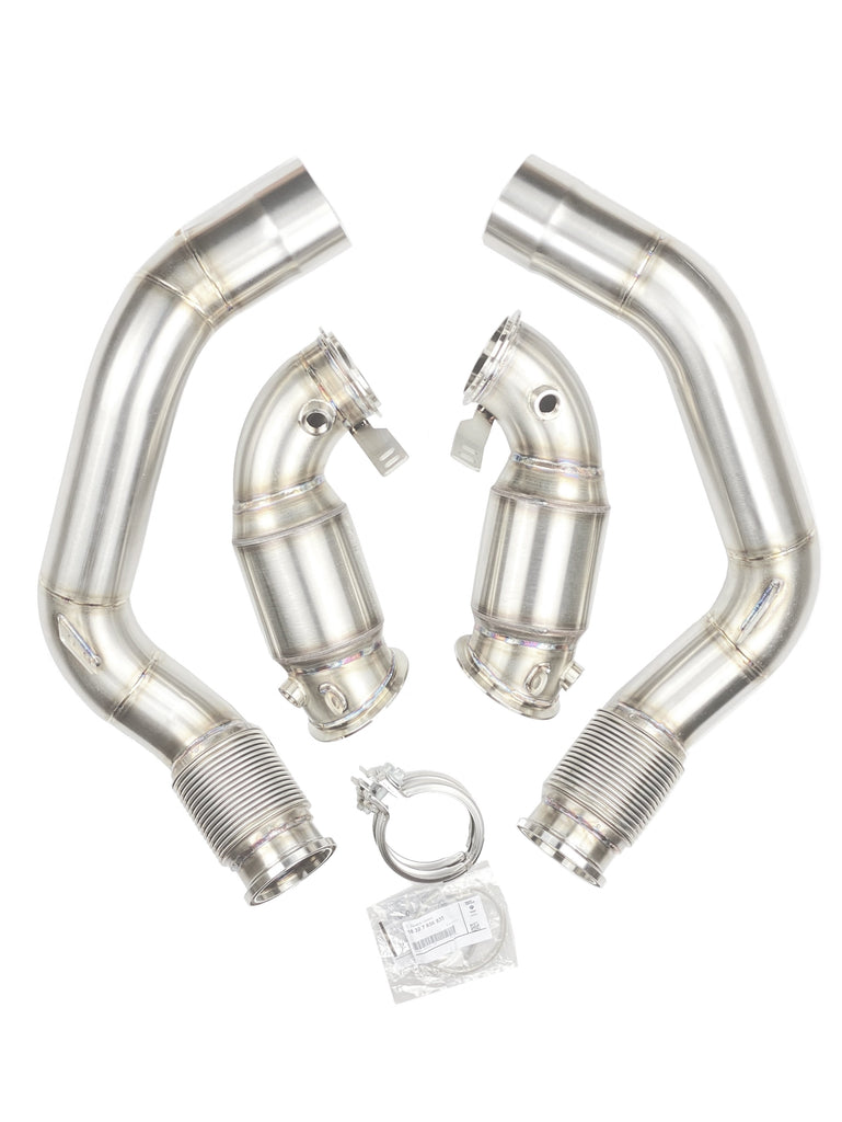 Les downpipes BMW X5M F95 X-Drive 4.4i V8 S63 2019-2022 (haut et bas) sont équipés de catalyseurs sport à flux élevé 200 CPSI. Si vous souhaitez ajouter plus de puissance à votre BMW X5M F95 et la rendre plus excitante et brutale, vous avez absolument besoin des downpipes avec catalyseurs sport à flux élevé 200 CPSI fabriqués par BRONDEX®.