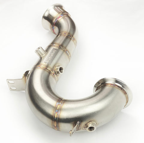 Downpipe for Mercedes GT43 X290 AMG 4-door coupe (3.0 Turbo M256 engine). The two main options available are GT43 catless downpipe and catted downpipe (downpipe with 200-cell High Flow Sports Catalytic Converter).